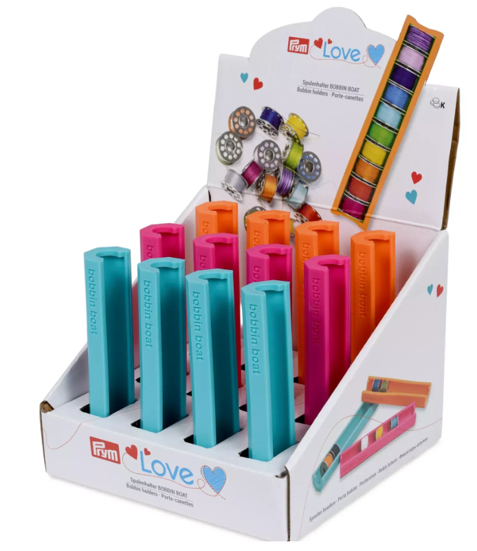 Držáky v barvách Prym Love – růžové, mátové a oranžové – navíc na šicím stole skvěle vypadají a přinášejí do pracovního prostoru svěží barevný akcent. Každý držák pojme až 10 cívek do šicího stroje, což zajišťuje přehledné a barevně sladěné šicí prostředí. Díky své velikosti se navíc snadno vejdou do boční kapsy vozíku ke stroji nebo do šicího košíku.
