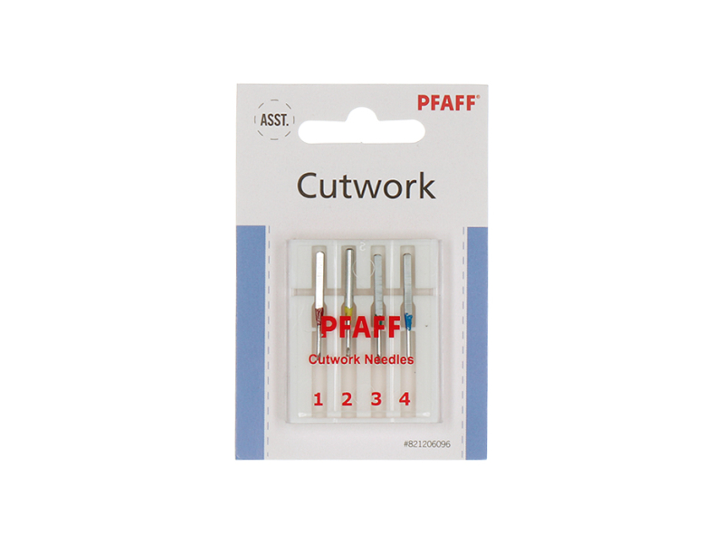 Sada speciálních jehel na cutwork pro vyšívací stroje Pfaff. Po vyzvání stroje stačí jen vyměnit jehlu za správnou barvu, stroj pak automaticky vyřízne váš vzor.