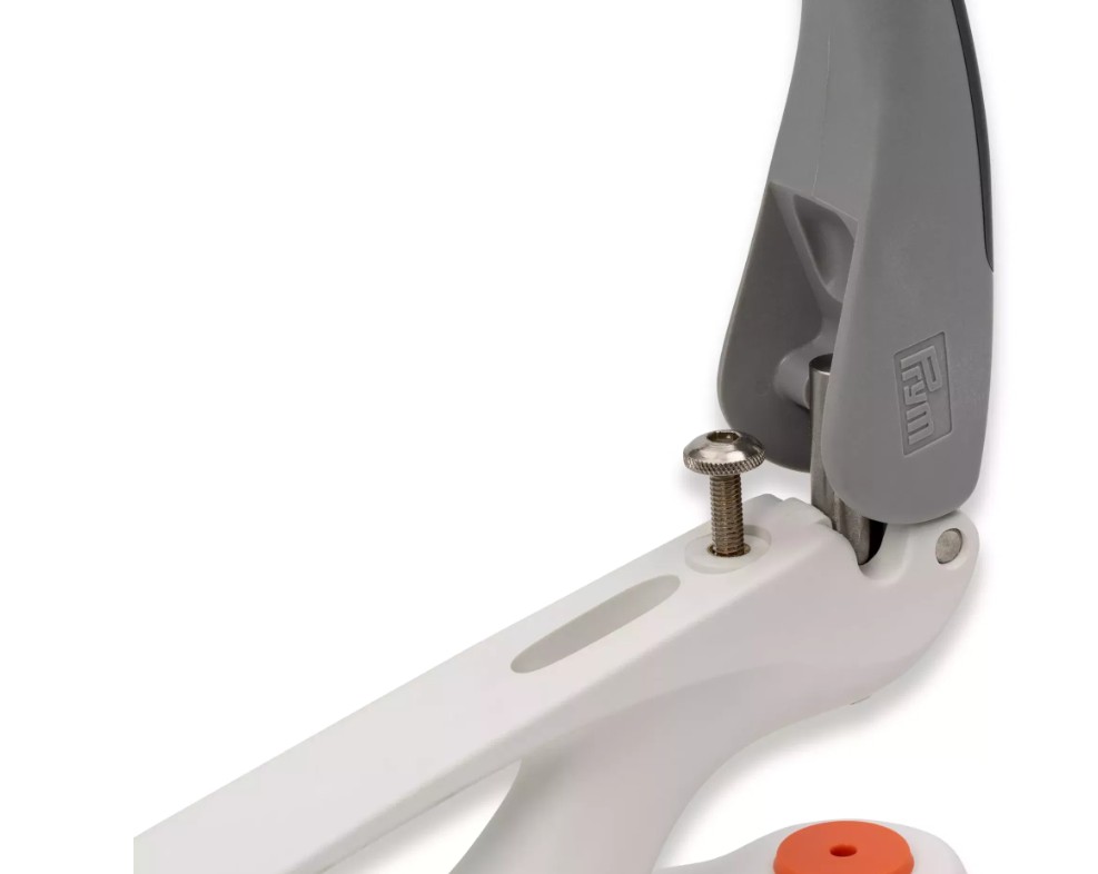 Ergonomická rukojeť s měkkým povrchem příjemně padne do ruky a neklouže. Podélné i příčné nastavení, stabilní plastové nožky a možnost jemné regulace síly umožňují precizní, úspornou a komfortní práci bez únavy.