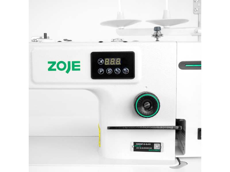 Univerzální profesionální šicí stroj Zoje. Stroj je vybaven moderním servomotorem umístěným v hlavě stroje, který je nejen úsporný (až 70 % oproti spojkovým motorům), ale i tišší a eliminuje vibrace, protože odpadá přenos klínovými řemeny. Servomotor je osazen ventilátorem pro lepší chlazení a je vybaven řídící jednotkou s displejem pro možnost nastavení pozice jehly nahoře a dole a s možností regulací maximálních otáček (stroje se spojkovým motorem dodáváme pouze v ekonomické verzi, protože tyto motorové jednotky jsou zastaralé a u servomotorů získáte úsporu el. energie až 70 %). Tento šicí stroj je díky tichému servomotoru vhodný i pro šití doma. S tímto strojem obsáhnete všechny běžné šicí operace. Díky novému LED displeji s ovládáním, můžete nastavit všechny požadované funkce snadno a jednoduše. Tento stroj má LED osvětlení pracovní plochy.