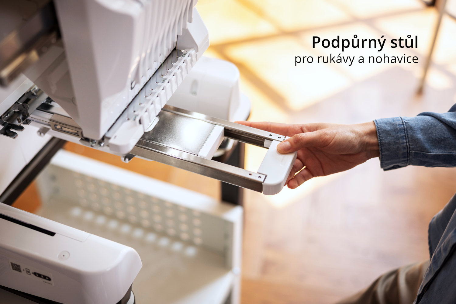 - Podpůrný stůl pro rukávy a nohavice v základní výbavě.