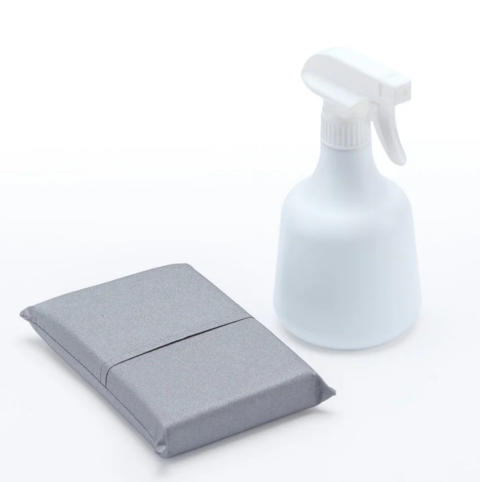 Příslušenství v balení: Praktická stříkací lahvička a stlačovací polštářek pro nejlepší výsledky při žehlení.