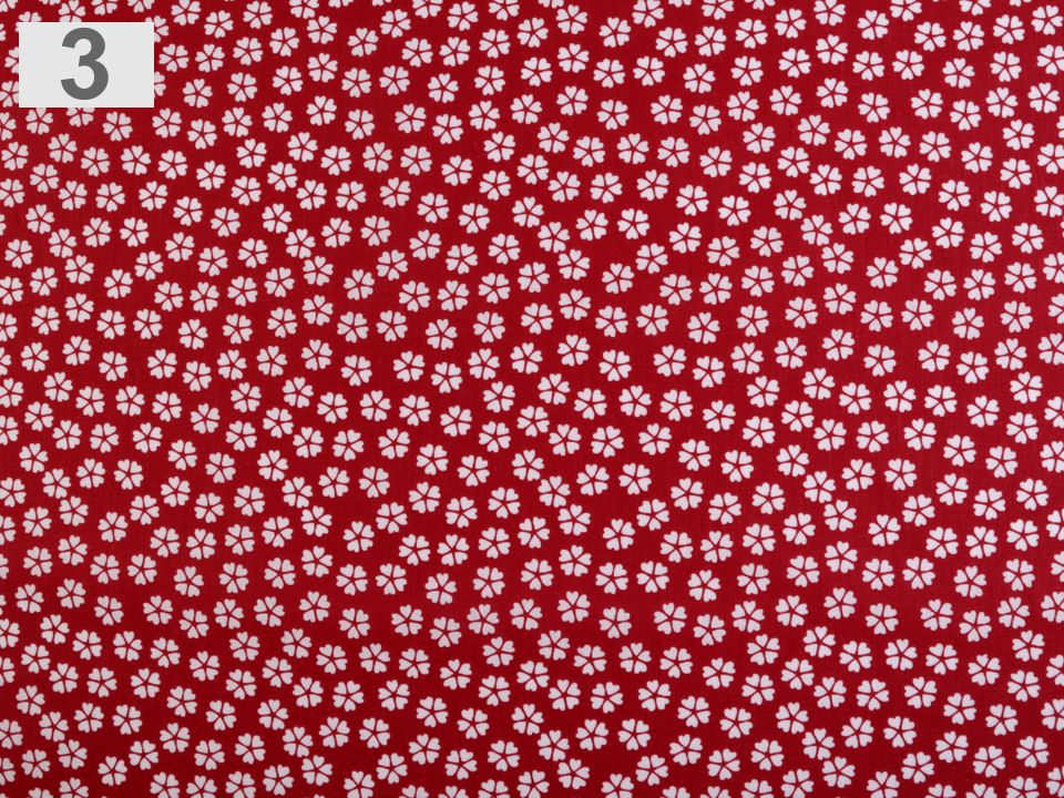 100% Bavlněnou látku, šíře 140cm, 115 g/m²,  zdobí potisk květů. Látka slouží především k dekoračním účelům. Vynikne na polštářích, taškách, ubrusech, běhounech, prostírání apod. Látka se může srazit o cca 5%, proto ji doporučujeme před šitím vysrážet (praním, popř. napařovací žehličkou). Barva červená