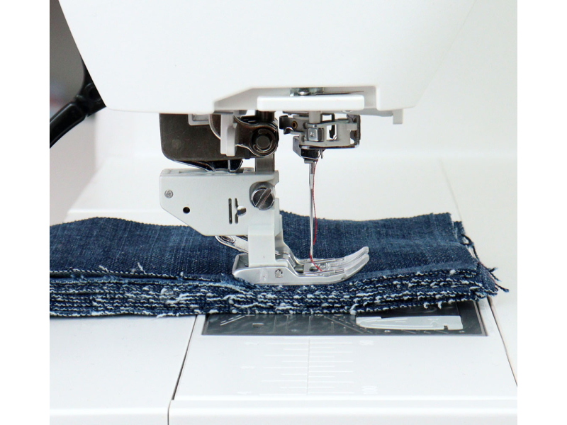 Zdvih kolenní pákou je ještě vyšší jak zdvih rukou, takže můžete opravdu šít i materiál, který jiné stroje ani nezvládnou.