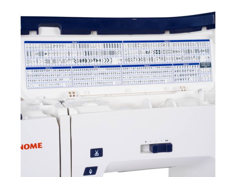 512 šicích programů: stehy základní, elastické (strečové), overlockové, plastické, quiltovací, vyšívání monogramů - písmen.