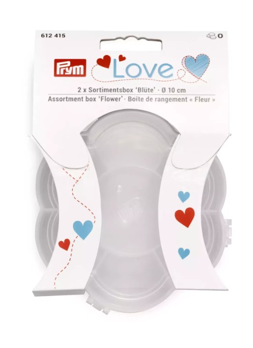 Když šijete, rychle sbíráte nejrůznější drobnosti na svém šicím stole. Pokud je chcete mít rychle a snadno po ruce, tento sortiment ve tvaru květiny si zamilujete! Skvěle se hodí pro ukládání knoflíků, oček a dalších drobností a můžete v ní mít i svá smíšená balení druků Color Snaps nebo Jersey Color seřazená podle barev. Praktická uzavíratelná krabička se 7 přihrádkami je vyrobena z kvalitního plastu, nabízí flexibilní uložení věcí potřebných k šicímu projektu a je libovolně použitelná. Jeho design ve tvaru květiny, když je naplněn barevnými předměty, přináší závan jara do každé šicí místnosti. Jedno balení obsahuje dvě krabice na sortiment.