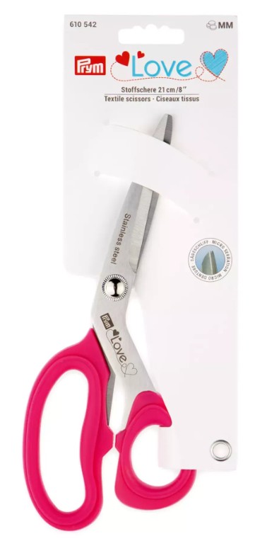 Nůžky na látky z řady Prym Love zaujmou od čepele až po špičku svou maximální spolehlivostí a přesností při střihu nejrůznějších druhů látek. Speciální mikrozoubkování vysoce kvalitních čepelí zabraňuje klouzání obtížných materiálů, jako je hedvábí či syntetické tkaniny. Rukojeť v jemné růžové barvě s měkkým vnitřním kroužkem zajišťuje mimořádně pohodlnou a nenamáhavou práci i při delším stříhání – větší oko nabízí prostor pro více prstů, což výrazně snižuje námahu.