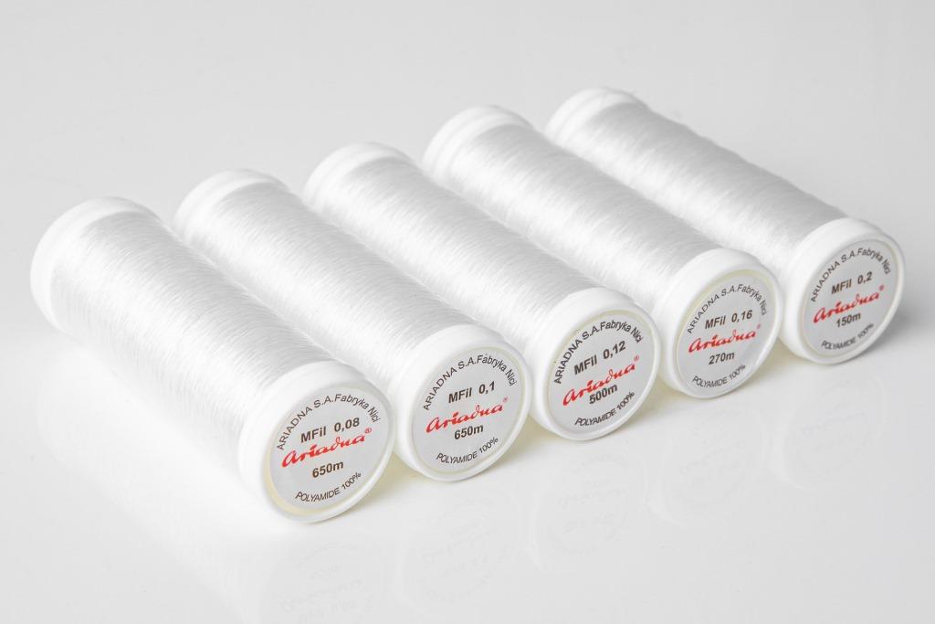 MFil je monofilní průhledná nit, která se používá pro neviditelný šev a všude tam, kde nepotřebujeme, aby byly vidět stehy.