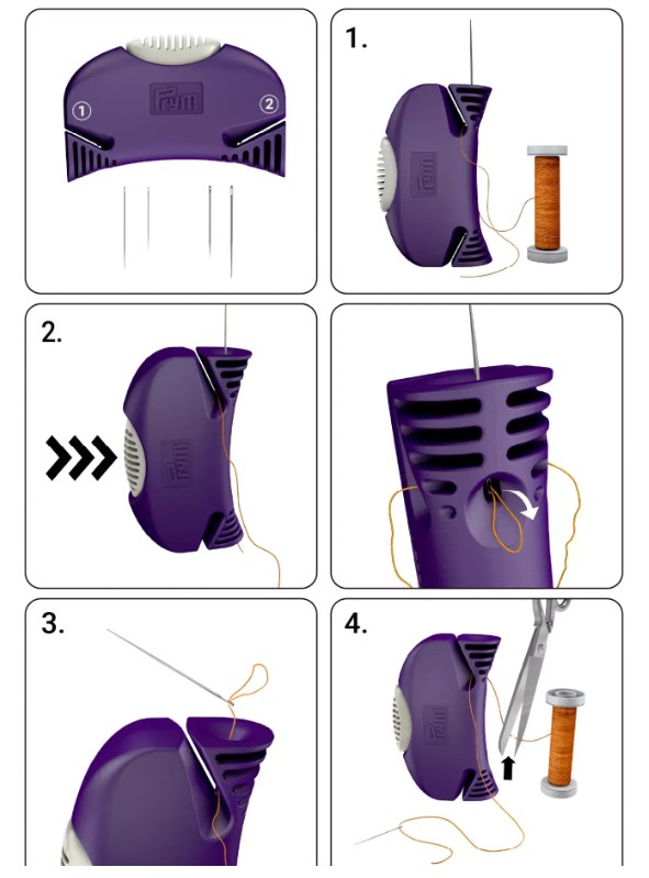 Ať už používáte šicí, quiltovací, vyšívací nebo zašívací jehly Prym, navlékač Prym Ergonomics je skutečně univerzální. Přizpůsobí se různým velikostem jehel: