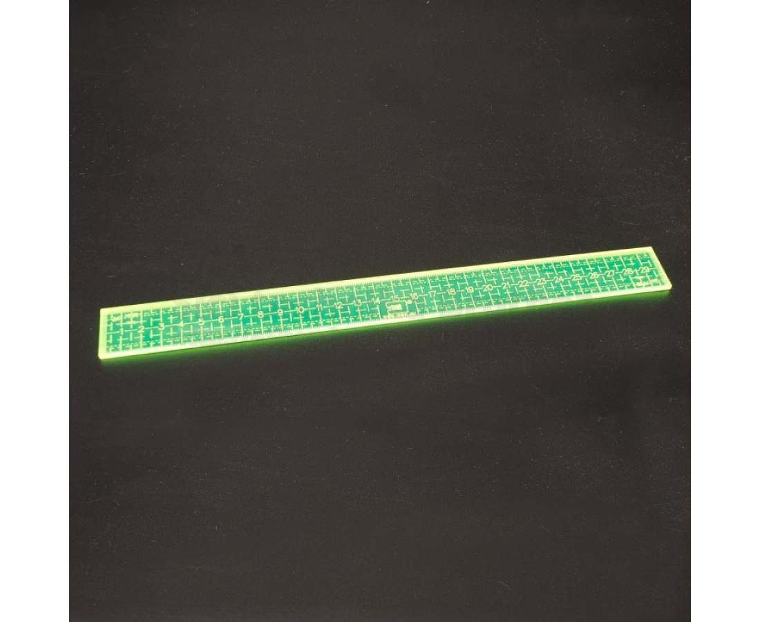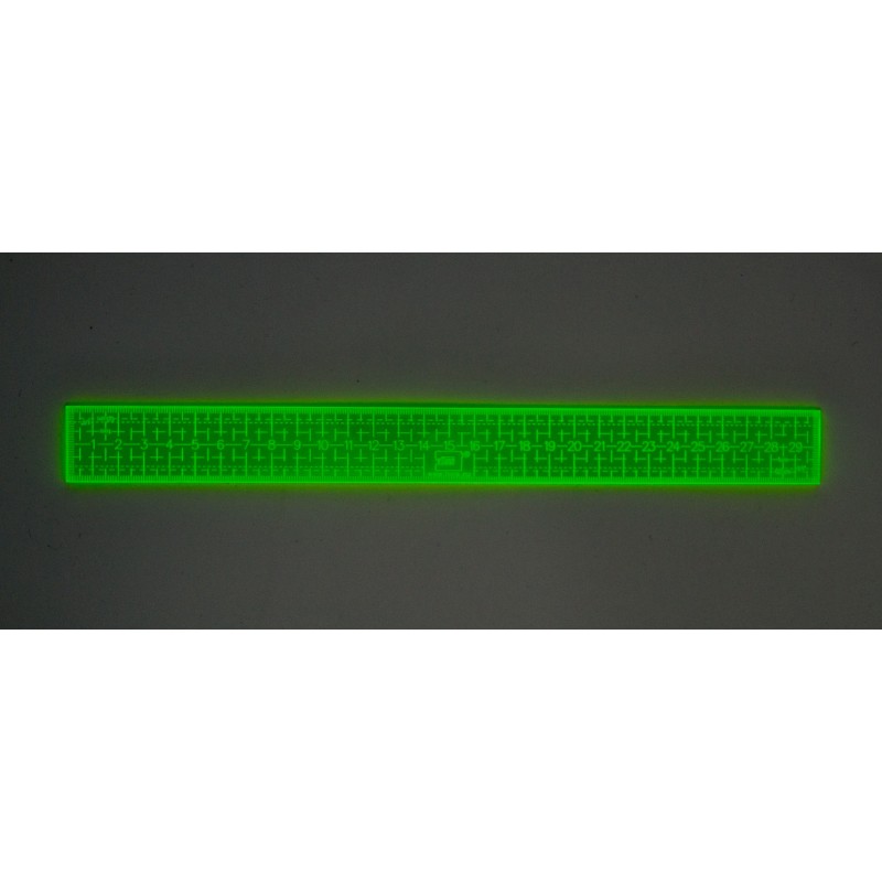 Výška - síla pravítka je 3mm, barva fluo - je dobře vidět na světlých i tmavých materiálech