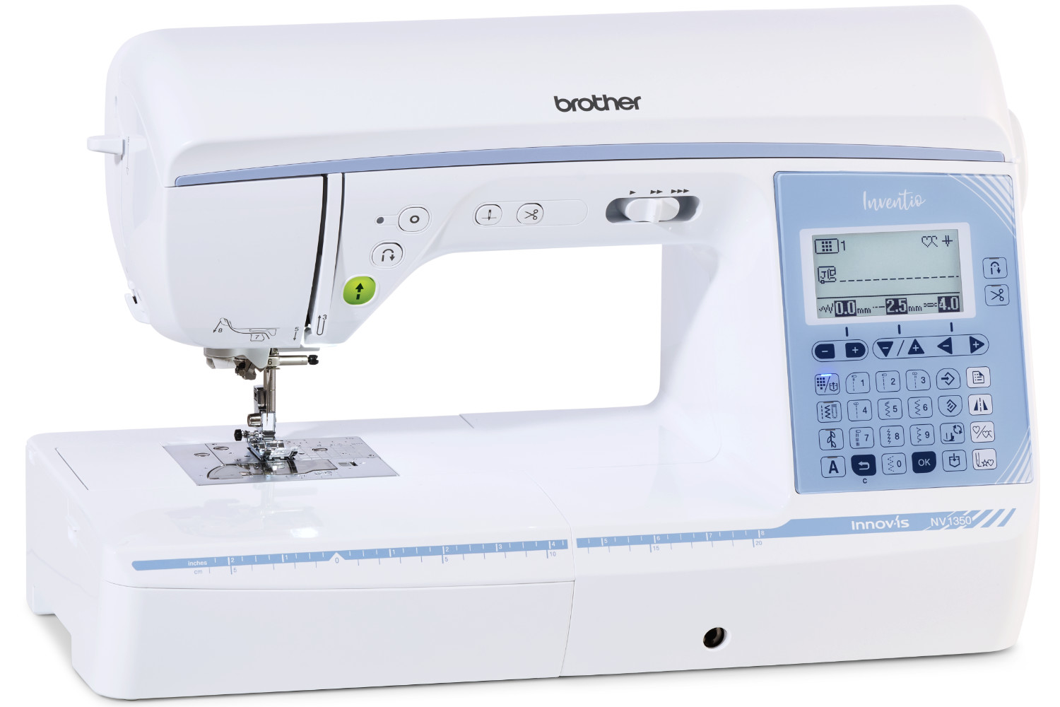 Brother Inventio NV1350 má díky stranovému podávání ozdobné stehy až 40 mm široké a zvládnete s ním zakázkové šití i tvoření pro zábavu!