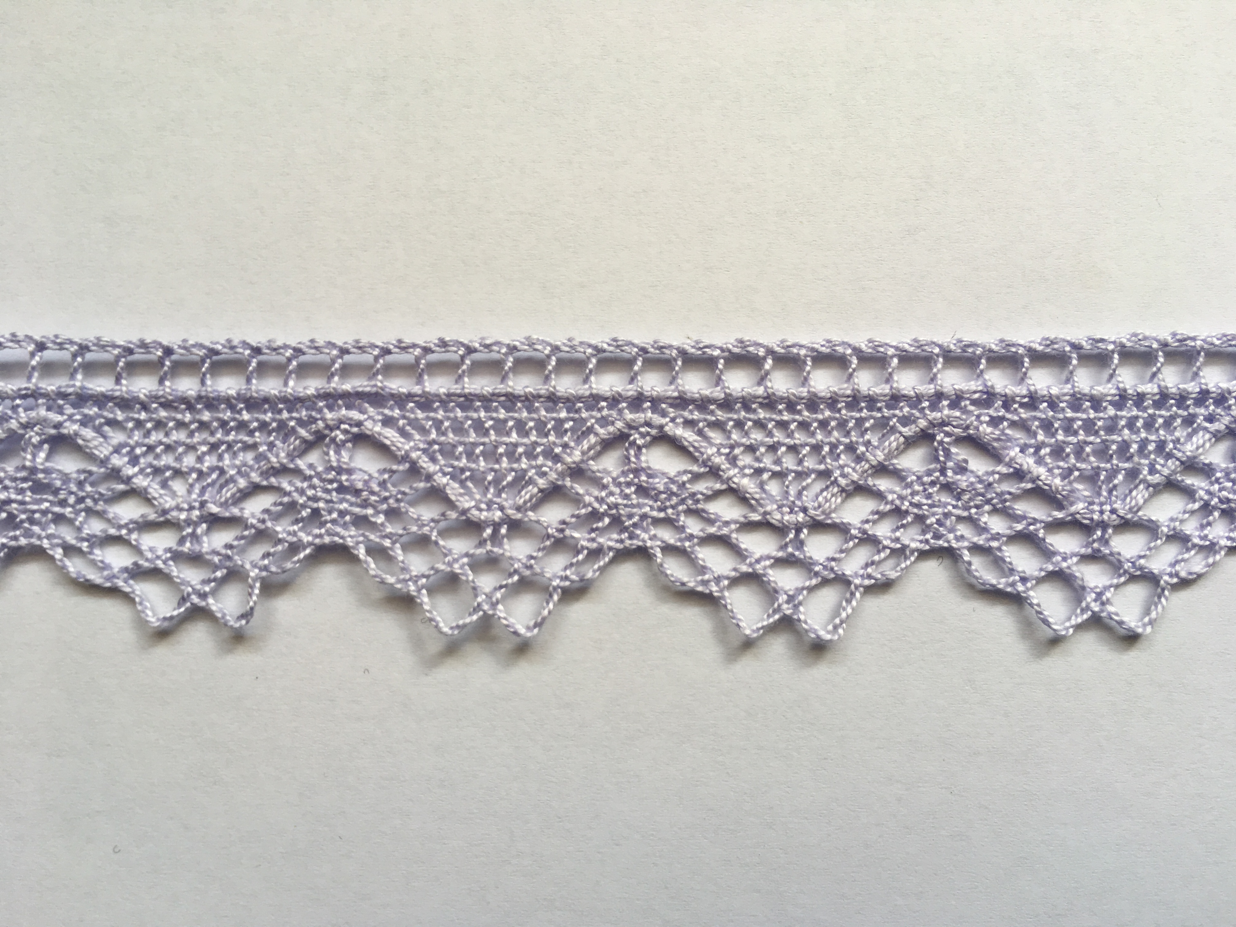 Hl.strana / nezobrazovat / Textilní galanterie / metráž - krajky, prýmky... / krajky / krajka 100% bavlna 32mm paličkovaná fialová