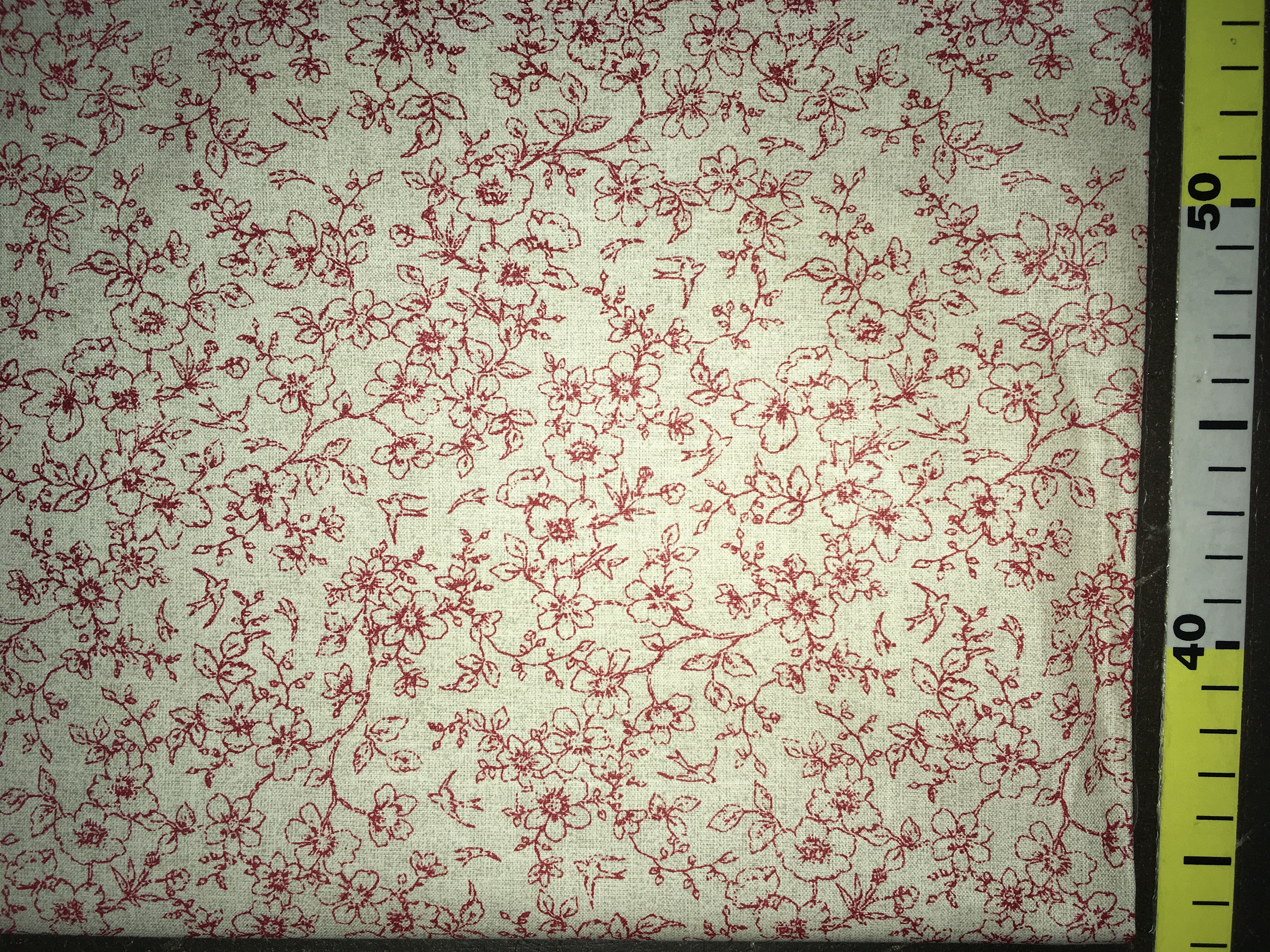 látka 100%bavlna červené květiny na béžové (režné) 145cm šíře/140gm2