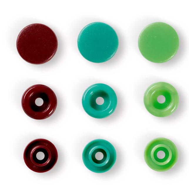 Hl.strana / Patchwork & quilting / Pomůcky PRYM / druky a kroužky / plastové patentky / plastové druky PRYM MIX sv.zelená/tm.zelená/hnědá