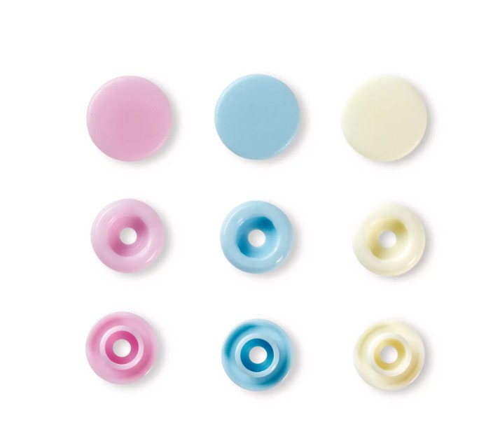 Hl.strana / Patchwork & quilting / Pomůcky PRYM / druky a kroužky / plastové patentky / plastové patentky PRYM LOVE sv.modrá/růžová/perleťová