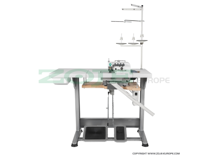 ZOJE ZJ880-4-181-BD je smontovaný kompletní průmyslový 4-nitný overlock, se zatahováním řetízku, včetně stolu KESSLER se zabudovaným servomotorem v hlavě stroje a polohováním jehly.