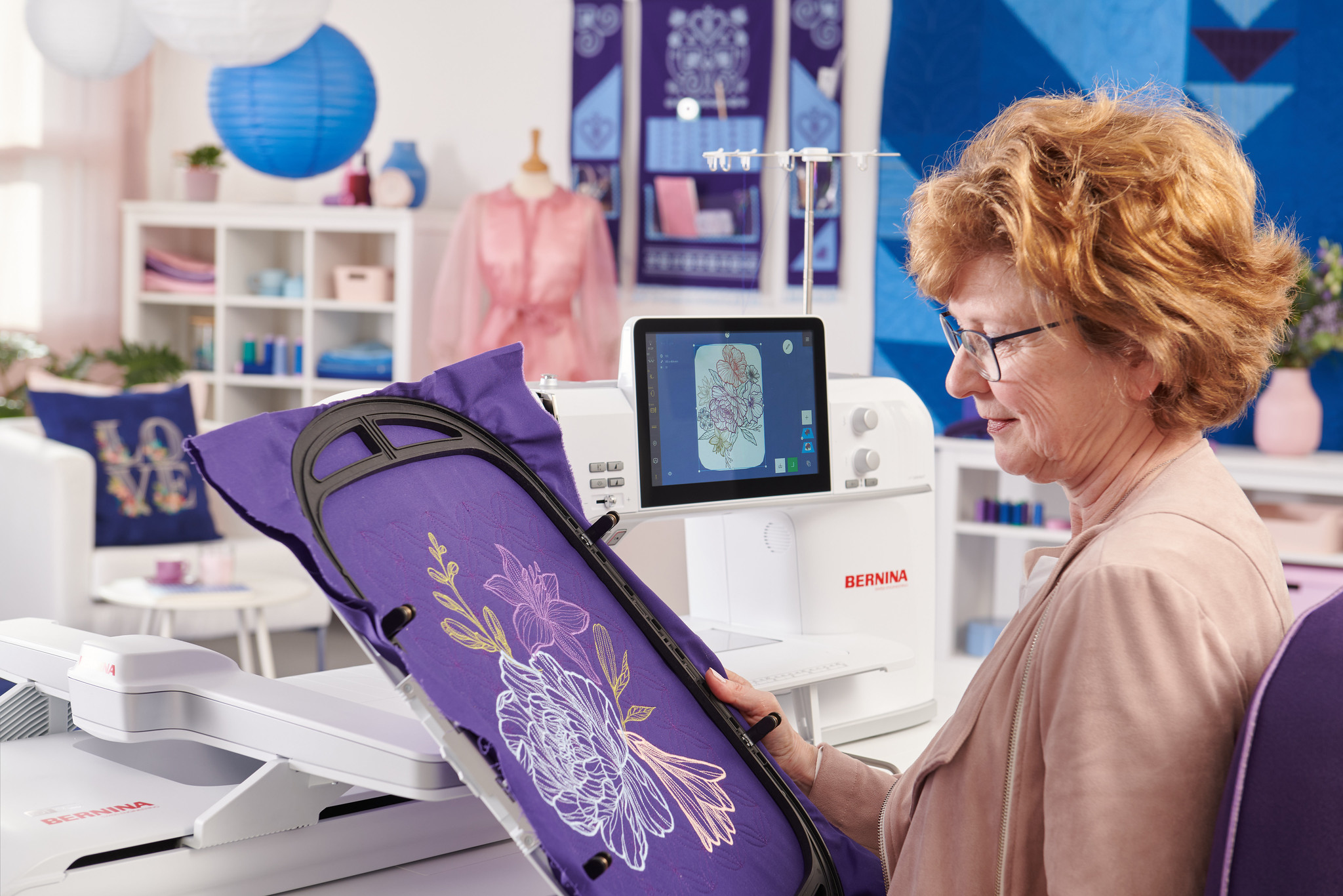 Pomocí Wifi můžete přenášet výšivkové vzory ze software Bernina Embroidery přímo do stroje Bernina 990 a naopak.