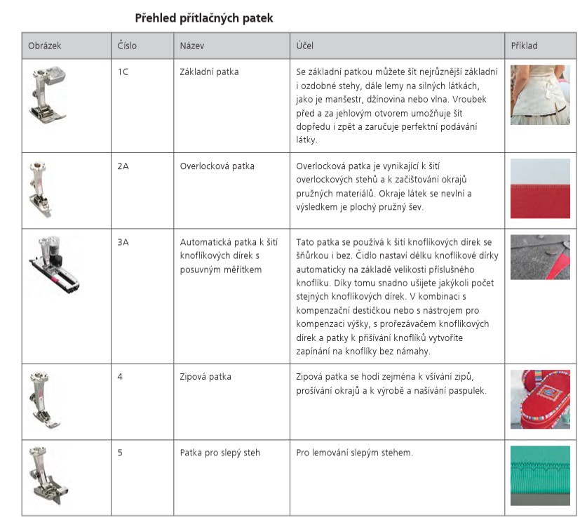 • možnost programování posloupnosti typu stehů jdoucích za sebou
