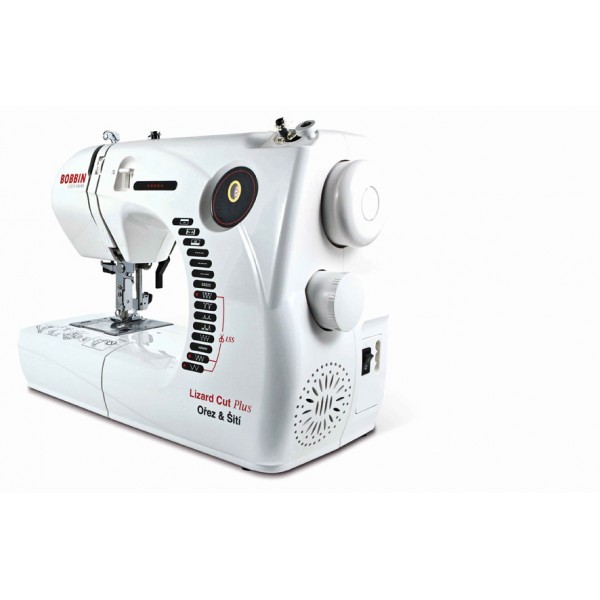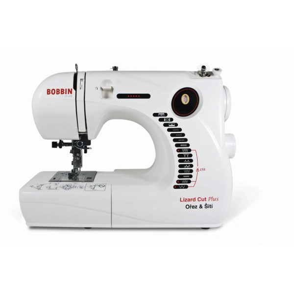 Šicí stroj Bobbin Lizard Cut Plus je mechanický šicí stroj s funkcí ořezu látky pro domácí použití. Šicí stroj Bobbin Lizard Cut Plus nabízí svým uživatelům 13 šicích programů a funkci ořezu látky, podobně jako je tomu u overlocku. Šicí stroj má overlockový steh, který se používá u klasického šití i ořezávání látky. Tento šicí stroj je dále vybaven horizontálním rotačním chapačem, úzkým volným ramenem, navlékačem nitě do jehly, 4-krokovou knoflíkovou dírkou, rychlou volbou programu s přednastavenou délkou i šířkou stehu. Šicí stroj Bobbin Lizard Cut Plus má vysoký zdvih patky, který je ideální i pro šití více vrstev látky, snadný výběr stehů i zpětné šití. Šicí stroj má pevně nastavenou délku i šírku stehu (nelze regulovat).