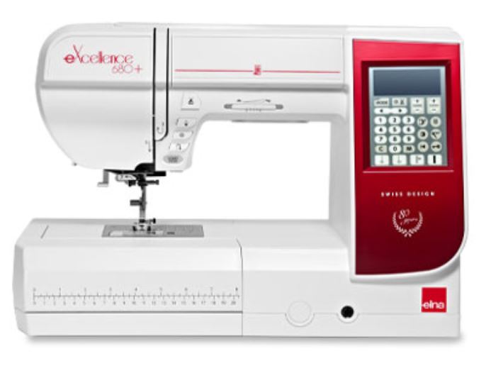 Šicí stroj Elna eXcellence 680+ tento model je vyroben k 80. výročí elny, na stroji je výroční znak a přidané bonusové příslušenství :