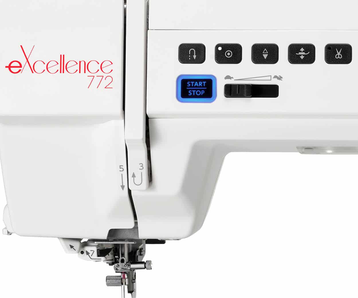 - Maximální rychlost šití nastavitelná až do 1060 stehů/min.