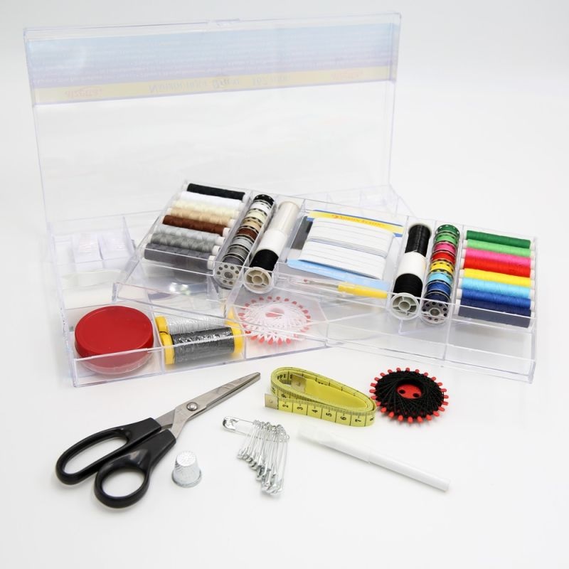 Šitíčko obsahuje : 6ks látací příze 100% polyacryl, á 20m, nadružené barvy,2ks režné niť 100% Polyester 20/3, á 20m, bílé a černé barvy,16ks šicí nitě 100% Polyester 40/2, á 50m, nadružené barvy,16ks kovová cívka do stroje, návin 25m, 100% Polyester 40/2,4ks vrchní šicí niť, 100% bavlna 50/3, á 25m, bílé a černé barvy,2ks průsvitné nitě, 100% Polyamid, á 50m, světlé a tmavé barvy,2ks cívka s elastickou okrouhlou pruženkou á 10m, 56% elastan, 46%polyester2m pruženka prádlová š.8mm, 2m pruženka prádlová š. 5,5mm, Šitíčko obsahuje : 30cm suchý zip našívací 20mm bílé,1 ks univerzální nůžky 16 cm,1 ks náprstek, 1 ks krejčovská míra 150cm, 1 ks krejčovská křída se štětečkem, 1 ks páradlo švů, 5 ks strojní šicí jehly „standard“ nadružené velikosti, 5 ks strojní jehly „Jeans“ nadružené velikosti, 80ks napichovací špendlíky v krabičce s molitanem, 12 ks zavírací špendlík nadružené velikosti, 5 ks ruční jehly nadružené velikosti + 1 ks navlékač nití, 2 ks poutko látkové
